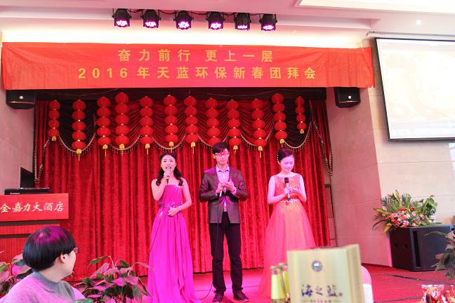 2016年2月4日,公司在金嘉力大酒店舉行了2016年新春團拜會。會上,公司創始人發表了題為《奮力前行 更上一層》的重要講話,表彰了2015年度杰出貢獻獎、天藍之星、天藍新星和特別獎,員工們表演了精彩的文藝節目。